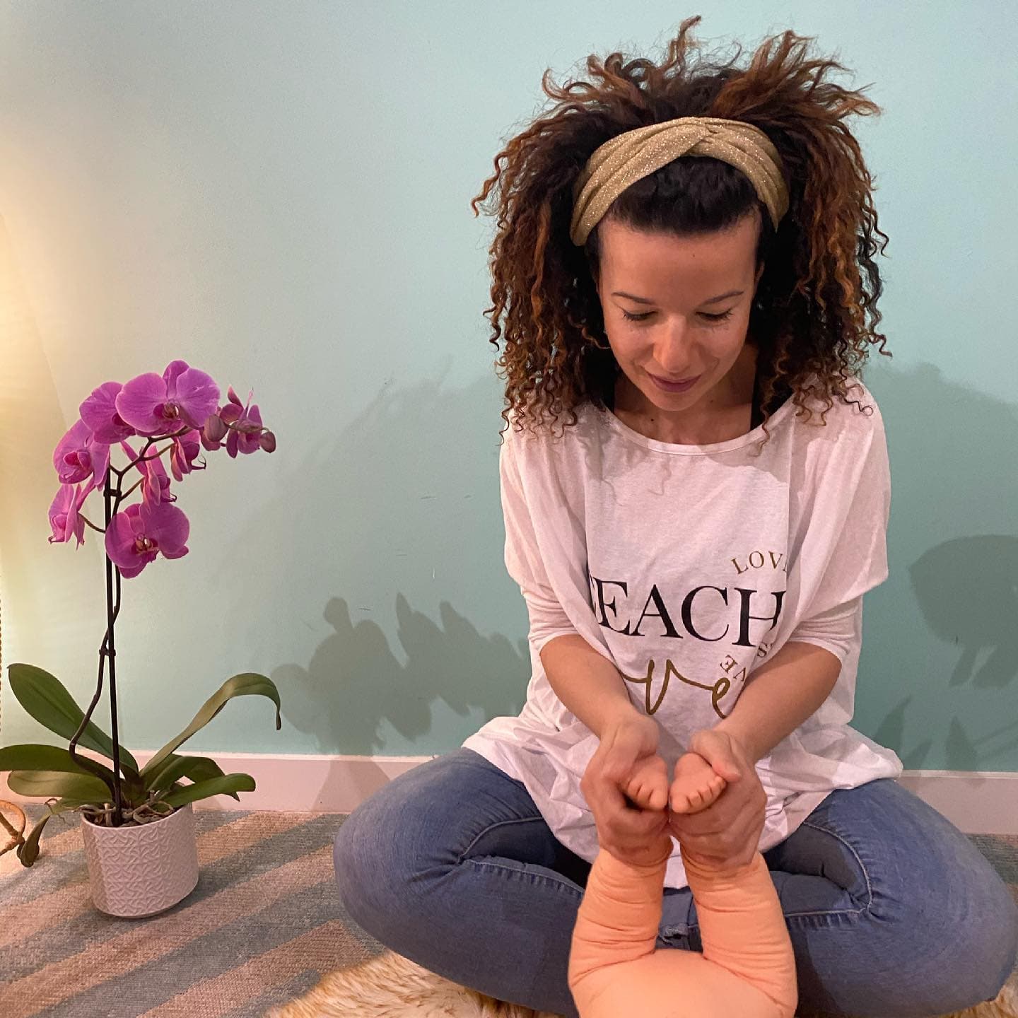 Mi chiamo Cristina La villa, osteopata pediatrica e mamma di due bambini. Il mio viaggio nel mondo del massaggio infantile è iniziato 11 anni fa, con la nascita di mia figlia, quando cercavo un modo per connettermi profondamente con lei.